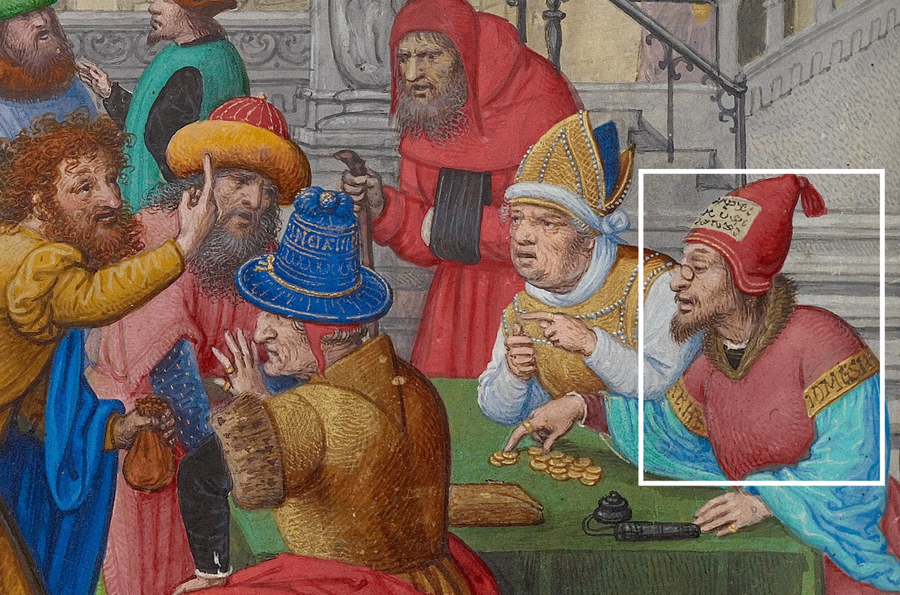 Неудивительно, что еврейские или псевдоеврейские буквы часто изображали на одеждах или головных уборах врагов Христа: фарисеев, которые против него злоумышляли, и первосвященников, добивавшихся его казни.