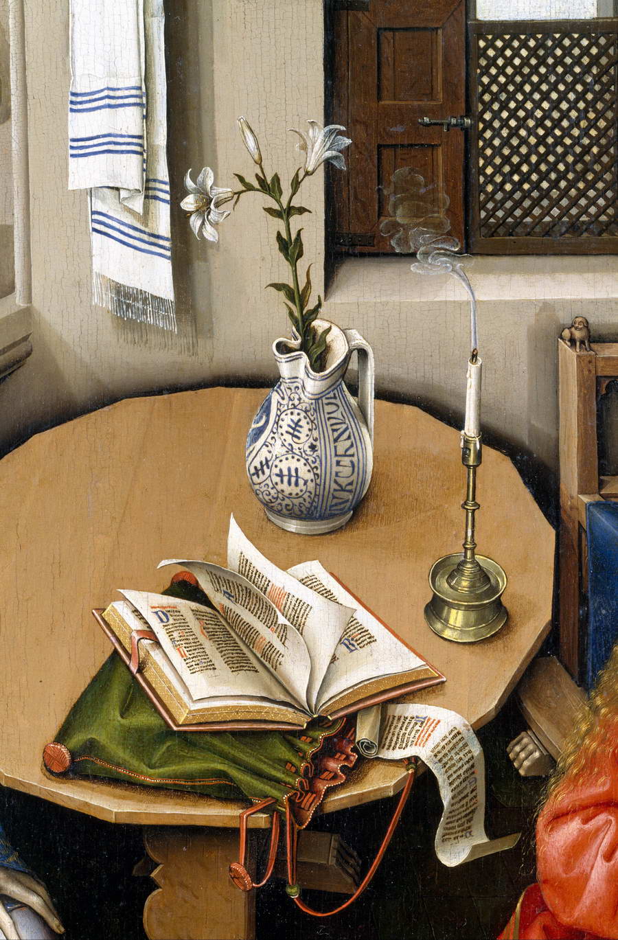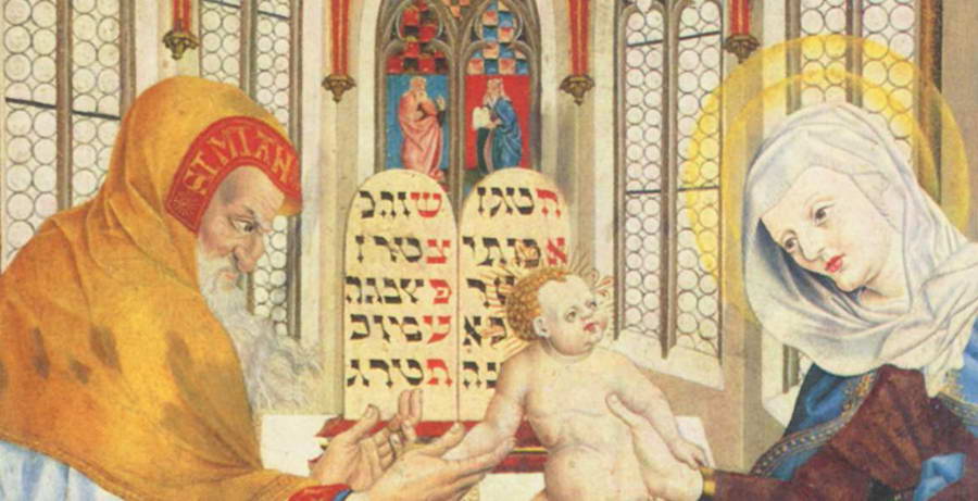 На одном из фрагментов алтарной преграды, созданной в Баварии в середине XV века, изображена сцена сретения Господня. На 40‑й день после рождения и 32‑й день после обрезания Иисуса, как и прочих еврейских первенцев, принесли в Иерусалимский храм. Там его встретил праведный старец Симеон, которому было обещано, что он не умрет, пока «не увидит Христа Господня» (Лк., 2:26), то есть Мессию.