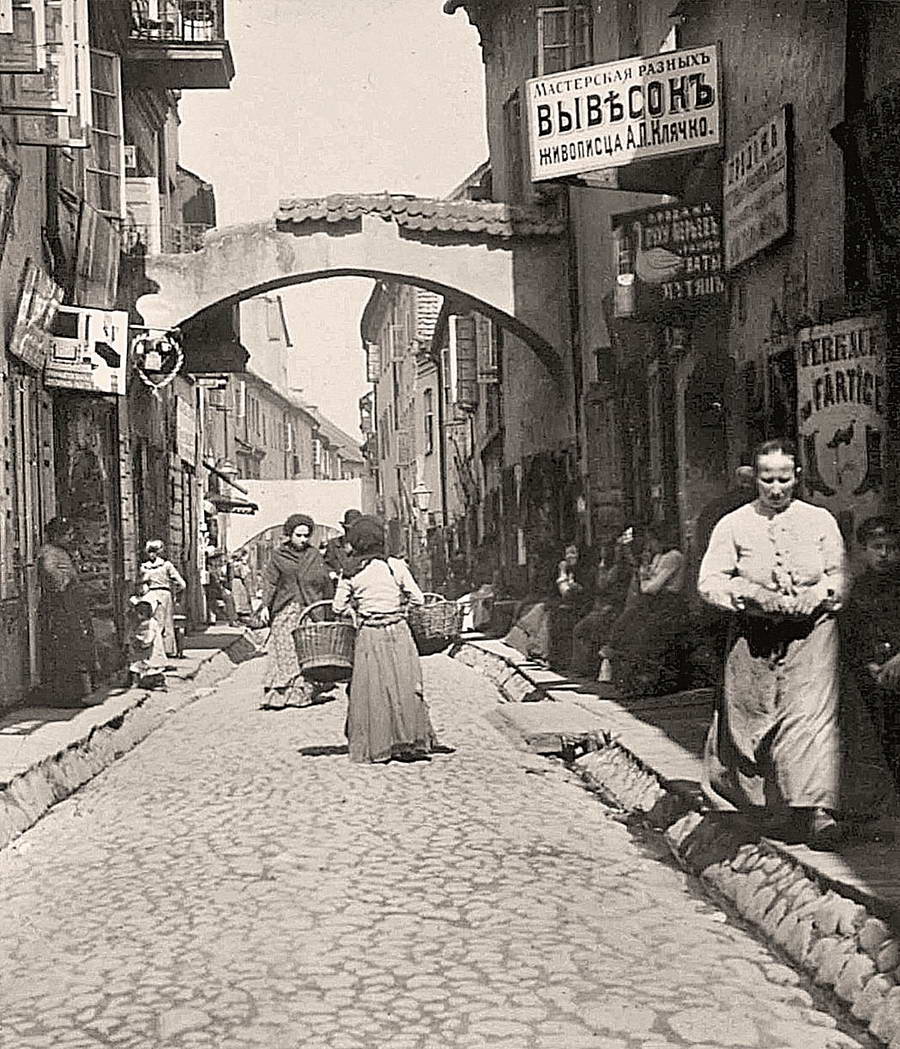 Посреди двора — маленький садик с постриженными кустами и покрашенной в зеленый цвет скамейкой. Вокруг садика — железная ограда с железной калиткой. Не спеша входят и выходят франтоватые поляки, косо посматривая на женщин: презрение к этим еврейкам висит на кончиках закрученных кверху седых панских усов. С крылечка из трех ступенек спускается дама в длинном платье, ее сопровождает служанка с пустой корзинкой. Зло смотрит на евреек, но раз хозяйка молчит, прислуга молчит тоже. Во двор заходит девушка в летней широкополой шляпе и белых перчатках до локтя, с букетом в руке. Заметив, что еврейки глазеют на нее, резко поворачивается спиной и звонит в дом со спущенными гардинами. Около короткой изогнутой трубы стоит дворник, принимает у женщин красные билетики, купленные у управляющего. Тоненькая серебристая струйка бежит в подставленную емкость. Когда ведро наполняется на три четверти, дворник закрывает кран, чтобы «жидувки» тут весь двор не залили. Женщины отходят в сторону, чувствуя спиной острый взгляд дворника: он следит, чтобы вода не выплескивалась на гладкую брусчатку, где не валяется ни единой бумажки, ни единой соломинки.