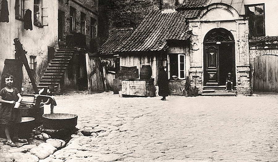 В Синагогальном дворе обвалился колодец. Сохнут бревна, поросшие коростой — зеленым мхом и белесыми грибами. Вокруг стоят женщины с озабоченными лицами, держат в руках глиняные кувшины, деревянные бадьи, жестяные бидоны. Одна рассказывает, как тяжело набирать воду из колонки на Замковой улице, сколько сил пришлось потратить, чтобы небольшое ведерко накачать. Адский труд! И вдруг летит булыжник, попадает прямо в ведро, оно падает. Она, ни жива ни мертва, оглянулась и видит: стоит польский мальчишка, шельмец: он‑то камень и кинул, хохочет во всю глотку. Слава Б‑гу, что булыжник ей в голову не угодил. А то бы еще чуть‑чуть, и…