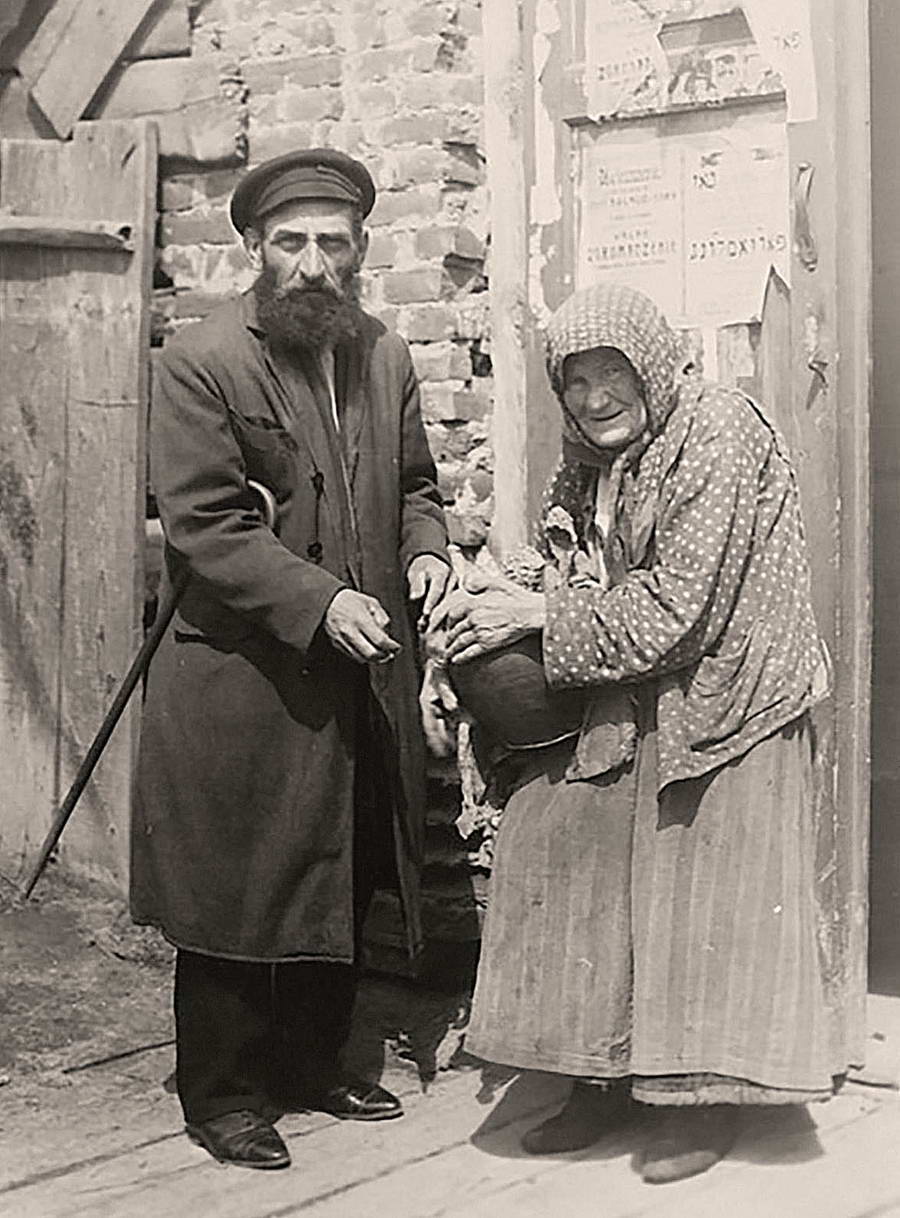 Приводят цитаты на арамейском и древнееврейском, и чем дальше, тем тише, будто к женщине все это не имеет никакого отношения. В один миг оба поруша открывают глаза и смотрят на скамейку рядом с собой. Знаками показывают женщине, чтобы положила деньги на скамейку, а не давала им в руки.