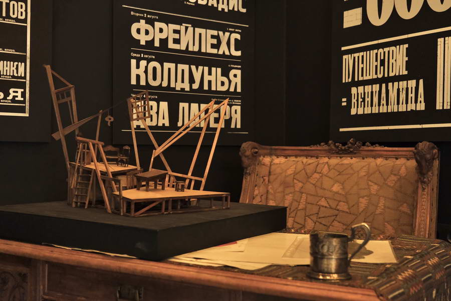 Звучит голос и Соломона Михоэлса. А рядом стоит мемориальное кресло легендарного режиссера из коллекции театра «Шалом».