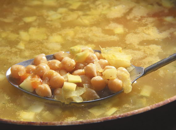 Я надеюсь, что сварить куриный бульон вам не составит труда, и потому останавливаться на этом не буду. Горох накануне вы уже замочили и потому сейчас пропустите его через мясорубку или, что еще лучше, размельчите в блендере.