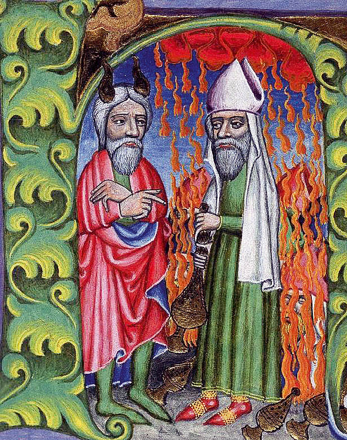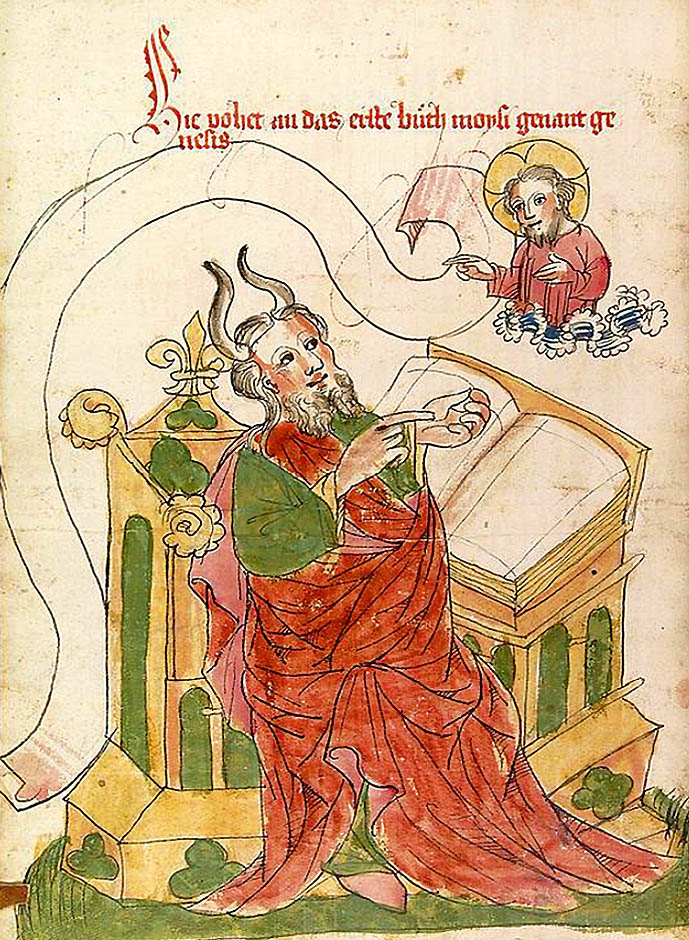 В «Изложении Шестикнижия», составленном англосаксонским монахом‑бенедиктинцем Эльфриком Грамматиком, на голове Моисея появляются громадные рога, напоминающие козлиные или бычьи.