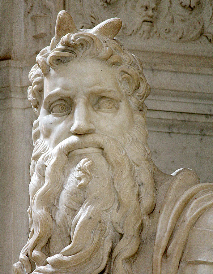 Многие скульпторы и художники еще следовали старой визуальной традиции. Так, в знаменитой статуе, которую Микеланджело Буонарроти создал для собора святого Петра в Риме около 1513–1515 годов, на голове пророка видны две вытянутые «шишки» — рога, маленькие и закругленные на концах.