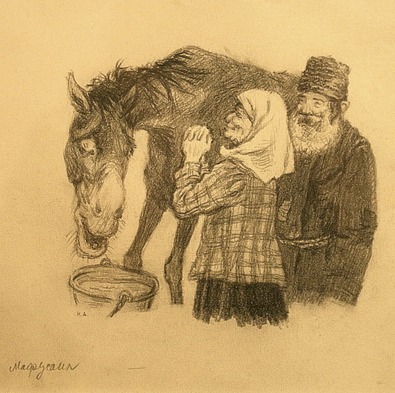 - Натан Альтман. Иллюстрация к роману Шолом‑Алейхема «С ярмарки». 1948