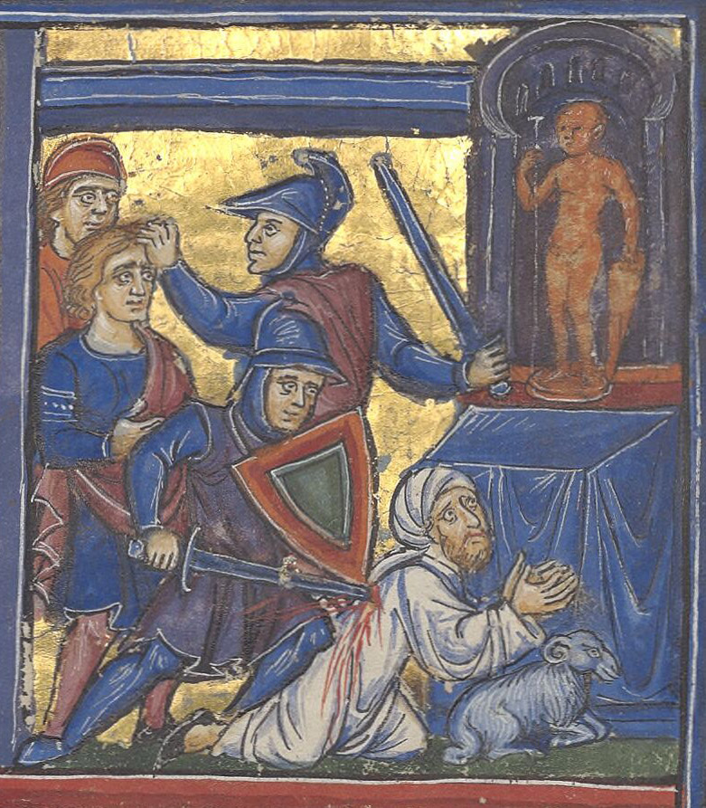 Дескать, язычники, по указке иудеев, некогда убили Христа, но крестоносцы, отправившись в Святую землю, им отомстили, сокрушив там (другое) язычество. Со времен Первого Крестового похода на Западе встречалось мнение, что сарацины почитают троицу божеств: Магомета, Аполлона и некоего Тервагана (или Термагана). Главным из них был Магомет, который в воображении крестоносцев превратился из пророка в божество. В «Песни о Роланде», записанной около 1100 года, сарацины шли в бой под штандартом с изображением своей демонической троицы: