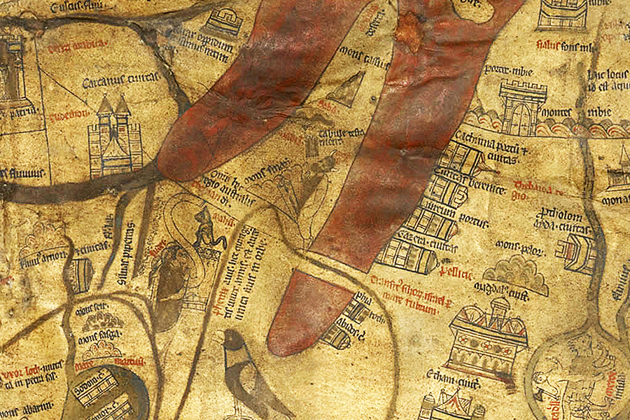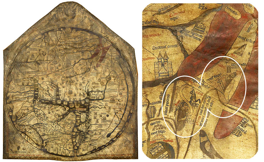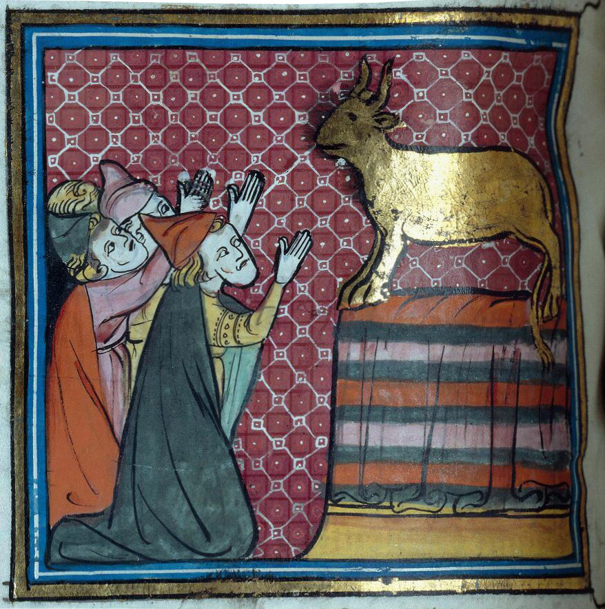 На Герефордской карте мира, созданной в Англии около 1300 года, между выкрашенными в красное «языками» Персидского залива и Красного моря изображена гора Синай. На ее вершине пророк Моисей получает от Б‑га скрижали с заповедями. Чуть ниже — группа мужчин. Они стоят на коленях перед колонной, или высоким алтарем, на котором установлен идол. Это непокорные израильтяне, которые, пока Моисей говорил с Г‑сподом, возроптали и создали себе истукана, золотого тельца. Рядом с ними красным подписано: Judei. В Средние века этим латинским словом обозначали скорее не древних израильтян, избранный Б‑гом народ, а современных евреев — иноверцев и врагов Христа.