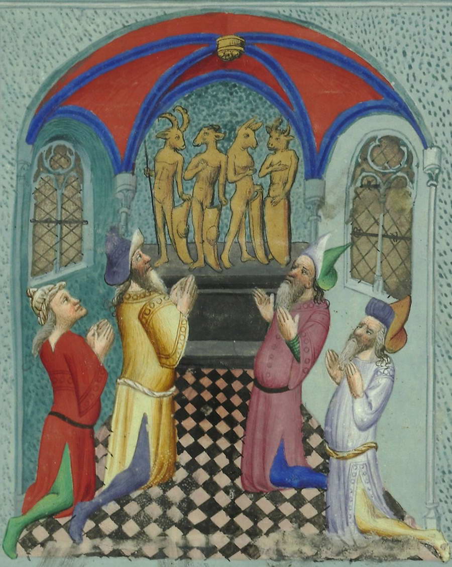 Помимо Магомета, Аполлона и странного Тервагана, в средневековых христианских текстах упоминается множество других богов, которым якобы поклонялись магометане. Часть этих имен была заимствована из античной истории и греко‑римского пантеона (Нерон, Пилат, Платон, Юпитер и прочие), другие — из обширного репертуара христианской демонологии (Вельзевул, Белиал, Люцибел, то есть Люцифер и иже с ними). Многие хронисты, писавшие о Крестовых походах, утверждали, что, обороняя Иерусалим от «франков», мусульмане выставили на стену идол Магомета и что в Храме Господнем (так крестоносцы именовали мусульманское святилище Купол Скалы) крестоносцы обнаружили огромную статую Магомета, восседающего на престоле.