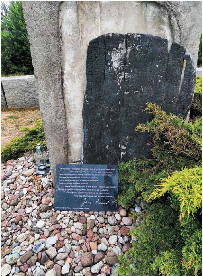 Одной из ключевых тем послесловий Поляна становится коммеморация событий в Едвабно. В статье под названием «Книга‑ожог» он приводит пример церемонии памятования 10 июля 2021 года 80‑летия трагедии, когда у мемориала в Едвабно два враждебных лагеря устроили войны памяти. Первый лагерь был представлен «варшавским раввином и председателем общины, израильским послом, каким‑то епископом, стариком‑евреем в кресле‑каталке и еще несколькими людьми со встревоженными лицами, в кипах или с флажками Израиля». Однако на один израильский флаг приходилось два‑три палестинских, которыми размахивали пришедшие в шарфах‑арафатках парни с транспарантами «Евреи, извинитесь за преступления ваших соплеменников». Церемонию проигнорировал тогда президент Польши Анджей Дуда. И это было показательно с точки зрения того, как изменилась историческая политика Польши в отношении Холокоста за 20 лет, если учесть, что на мероприятии, посвященном 60‑летию трагедии, действующий на тот момент президент Польши Александр Квасьневский попросил прощения у еврейского народа и открыл мемориал «в память об убийстве евреев из Едвабно и окрестностей».