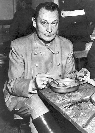 Герман Геринг обедает в перерыве во время Нюрнбергского процесса. 1945