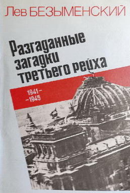 - Обложка книги Льва Безыменского «Разгаданные загадки третьего рейха». М.: «Новости», 1984