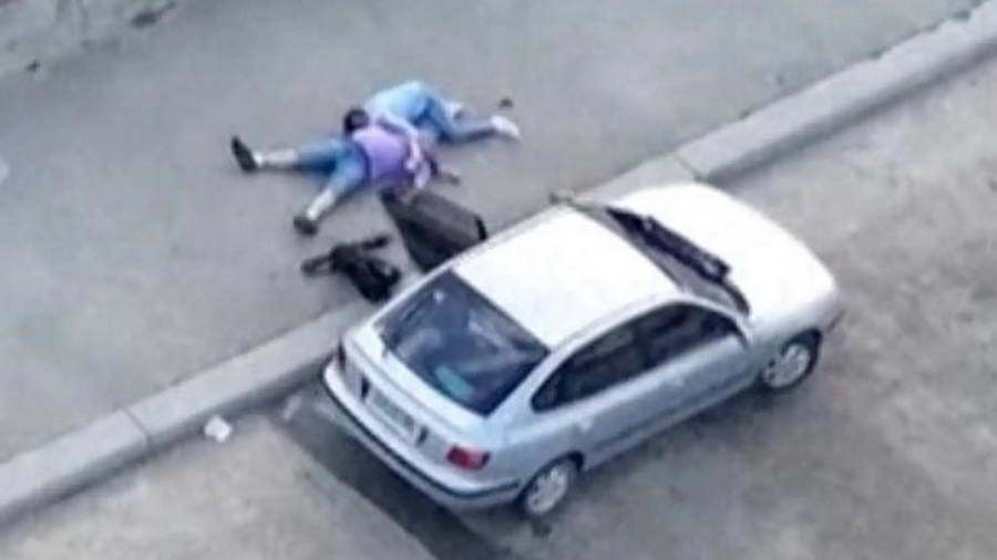 На записи с видеорегистратора проезжающей машины мы видим немолодую пару: Борис и София Гурман идут мимо пляжа по Камбелл Перэйд. Лобовое стекло припаркованного у обочины серого Hyndai затянуто черным флагом ИГИЛ . Из машины выходит террорист с винтовкой. Борис бросается на террориста, борется с ним, валит его на асфальт. София приходит на помощь мужу. Борису удается отобрать винтовку, он направляет ее на террориста. Машина, видеорегистратор которой все это зафиксировал, проезжает мимо. На записи с другого видеорегистратора террорист расстреливает Бориса и Софию в упор. На съемке с дрона они лежат на асфальте, а два террориста на пешеходном мостике расстреливают людей в парке у пляжа.