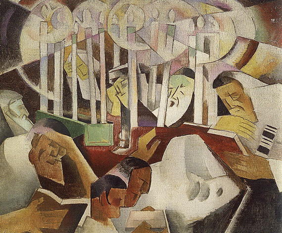 «Голод» удовлетворяло специально организованное в Москве в 1918 году Музейное бюро, покупавшее работы преимущественно у авангардистов и рассылавшее их по тем городам России, где имелись художественные училища или художественно‑учебные мастерские с тем, чтобы студенты учились создавать современные произведения искусства на конкретных примерах.