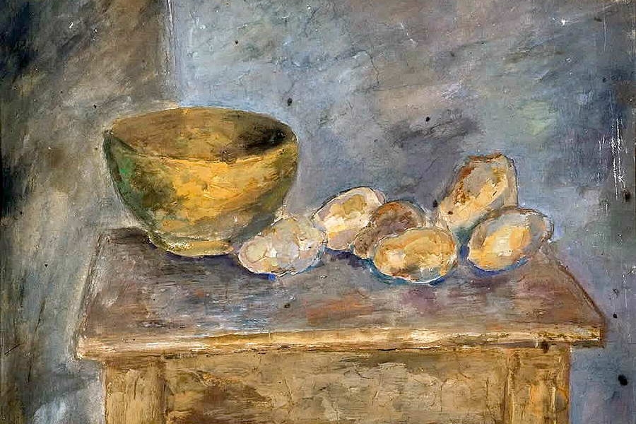 С материалами дело тоже обстояло очень плохо. Под рукой была лишь акварель да бумага, порой оберточная или даже папиросная. Об аскетичном быте свидетельствует натюрморт Фалька «Картошка», представленный на выставке.
