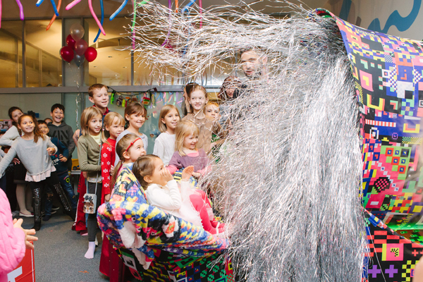 В то время, пока родители знакомились с творчеством классика современного искусства и историей Бахметьевского гаража на лекции историка архитектуры Николая Васильева, самые юные гости музея побывали на интерактивной экскурсии по выставке «Диковинные штуковины», собственноручно сделали декоративное панно, рамки для своих первых картин и поучаствовали в воркшопе «Сила трансформеров» от VARENYE ORGANIZM.