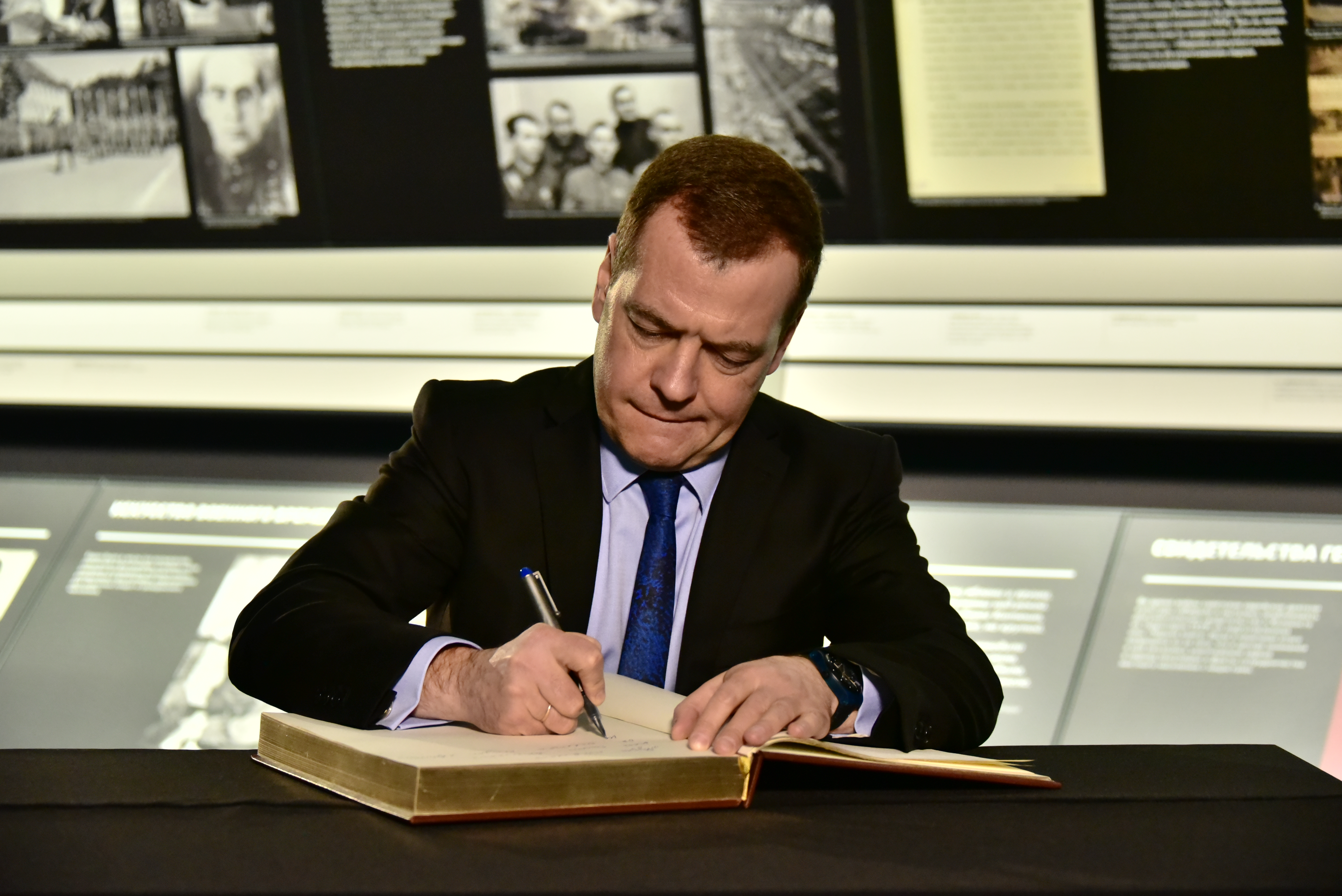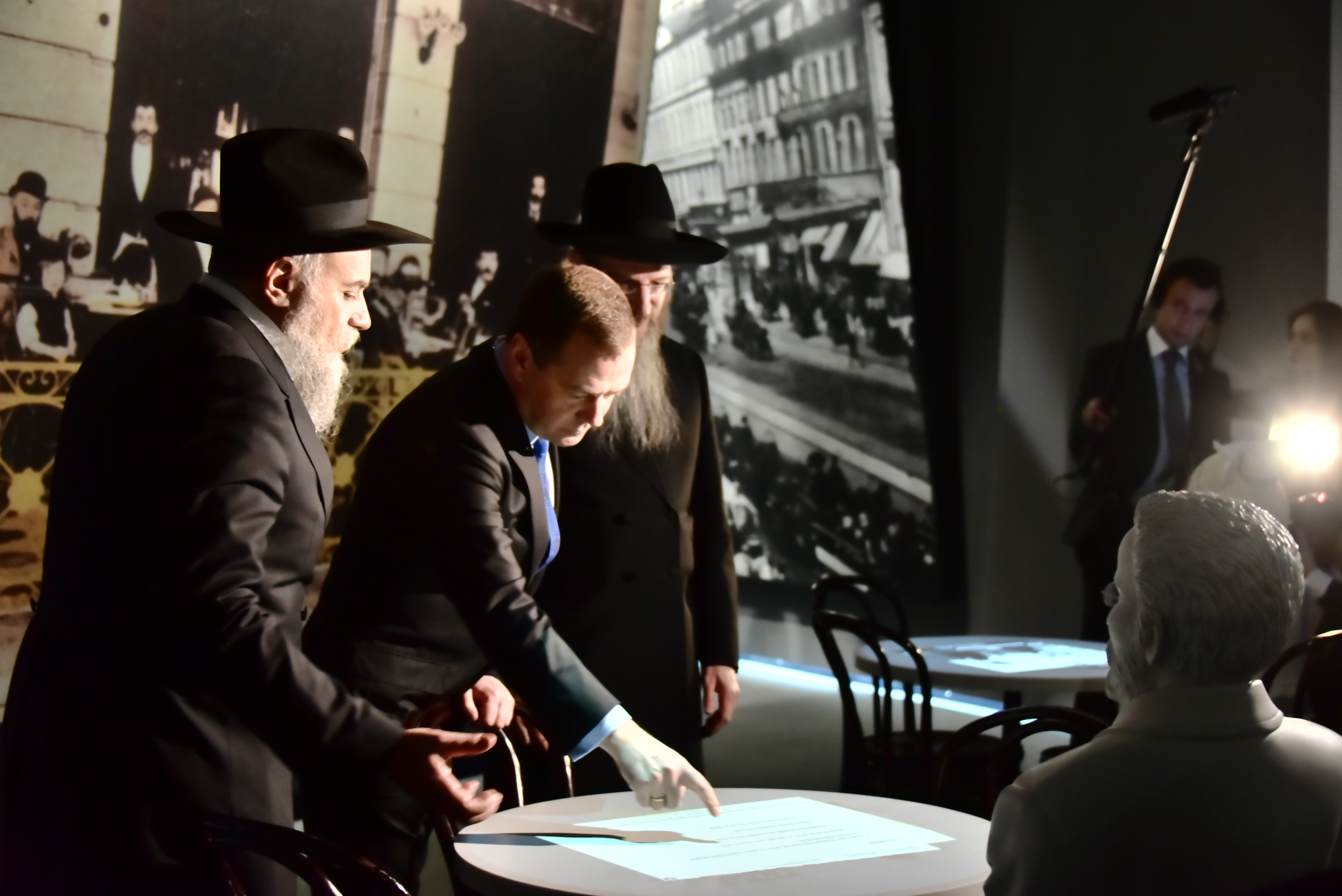 В ходе визита Дмитрий Анатольевич посетил экспозицию музея. Во время экскурсии его сопровождали президент ФЕОР Александр Борода и главный раввин России Берл Лазар.