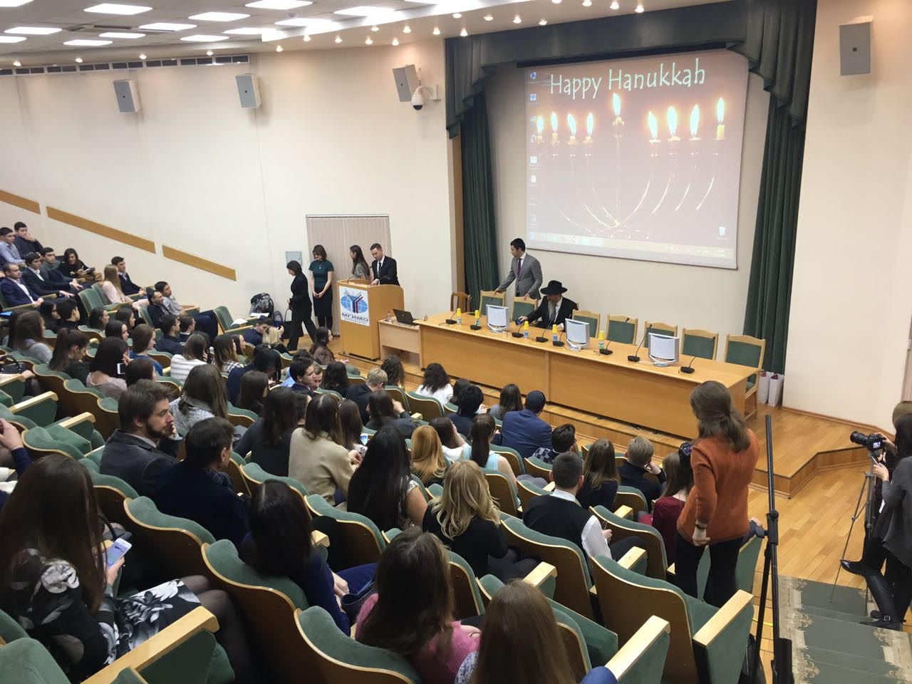 В четверг, 15 декабря, главный раввин России Берл Лазар встретился с участниками еврейского студенческого клуба МГИМО и рассказал им о традициях празднования Хануки. Встреча прошла в актовом зале института. На ней также присутствовал руководитель бейт-Хабад при МГИМО раввин Шимон Краснодомский и политический советник посольства государства Израиль в России Ноа Гиносао.