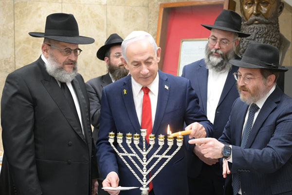Премьер-министр Израиля Биньямин Нетаньяху зажёг восьмую ханукальную свечу в своей канцелярии в Иерусалиме вместе с посланниками движения Хабад, отметив завершение праздника Ханука.