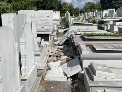Десятки надгробий на еврейском кладбище были изуродованы свастиками и оскорбительными граффити, нанесенными ярко-красной краской, и полиция ищет виновных, пишет журналист «ABCnews» Джон Хаворт.