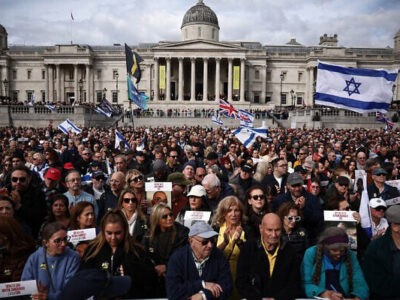 В Лондоне тысячи человек собрались на Трафальгарской площади на митинг, организованный Советом депутатов британских евреев. Там звучали молитвы и слова поддержки еврейской общине Манчестера, пережившей на этой неделе теракт у синагоги.
