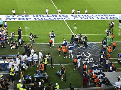 Матч за Суперкубок Европы между «Пари Сен-Жермен» и «Тоттенхэмом» в Удине обернулся политическим скандалом. Перед началом игры на поле развернули баннер с надписью «Stop Killing Children», что израильские футбольные чиновники назвали беспрецедентным проявлением политической ангажированности спортивной организации.