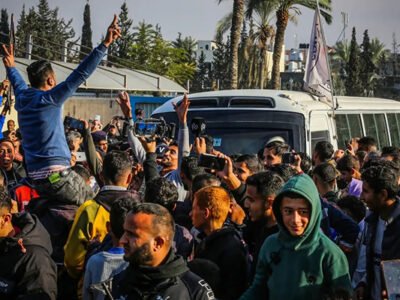Те, кого отпускали на Западный берег, покинули тюрьму «Офер» вскоре после освобождения израильских заложников из Газы. Когда они прибыли на автобусе в общественный центр в Рамаллахе, бывших заключенных встречали ликующие толпы, размахивающие палестинскими флагами.