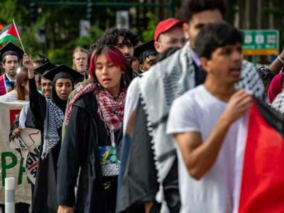 Гарвард временно запретил десяткам студентов и преподавателей посещать библиотеки после того, как они приняли участие в молчаливых «занятиях» — когда протестующие сидели за библиотечными столами с плакатами, выступающими против войны в Газе, — хотя аналогичный протест не привел к дисциплинарному взысканию в декабре 2023 года. В Университете Индианы в Блумингтоне некоторые студенты и преподаватели, которые присутствовали на бдениях со свечами, были привлечены к дисциплинарной ответственности в соответствии с новым запретом на самовыражение после 23:00. Администрация Пенсильванского университета и сотрудники полиции кампуса приказали участникам бдений переместиться, поскольку они не зарезервировали место в соответствии с новыми правилами. А в Университете штата Монклер в Нью-Джерси сотрудники полиции часто превосходят по численности участников еженедельной демонстрации, где протестующие держат плакаты с фотографиями детей, убитых в Газе, и словами: «Мы скорбим». «Они говорят, что это для нашей безопасности. Но я думаю, что это больше для того, чтобы держать нас под контролем», — заявила студентка Тасним Абдулазиз.
