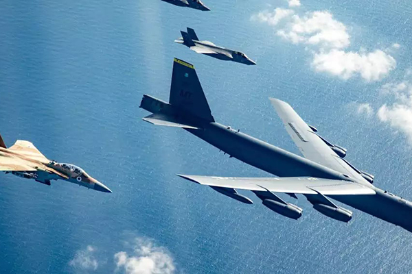 В учениях были задействованы израильские истребители F-35i и F-15i, летавшие рядом с американским стратегическим бомбардировщиком B-52, отрабатывая координацию в различных оперативных сценариях.