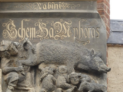 Барельеф из песчаника на стене исторически важной церкви в восточногерманском городе Виттенберг изображает двух людей, изображенных как евреи, сосущих соски свиньи, в то время как фигура, предположительно раввин, поднимает хвост животного и заглядывает в его анус. Барельеф особенно оскорбителен, поскольку свиньи считаются в иудаизме нечистыми животными.
