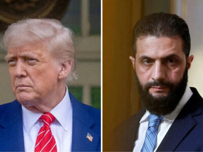 Президент США Дональд Трамп провёл историческую встречу с главой переходного правительства Сирии Ахмедом аш-Шараа — первая такая встреча на уровне президентов двух стран за последние 25 лет. Переговоры прошли в Эр-Рияде 14 мая в рамках ближневосточного турне Трампа и длились чуть более получаса. По видеосвязи к ним присоединился также президент Турции Реджеп Тайип Эрдоган.