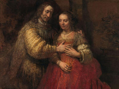 Одним из центральных экспонатов является картина Рембрандта «Еврейская героиня (вероятно, Эсфирь) из еврейской Библии» (1632–33). На полотне изображена женщина в роскошном красно-золотом платье, сидящая на стуле, пока мужчина укладывает её длинные светлые волосы. Эта работа демонстрирует, как Рембрандт и его современники переосмысливали библейские образы, представляя их в контексте своей эпохи.