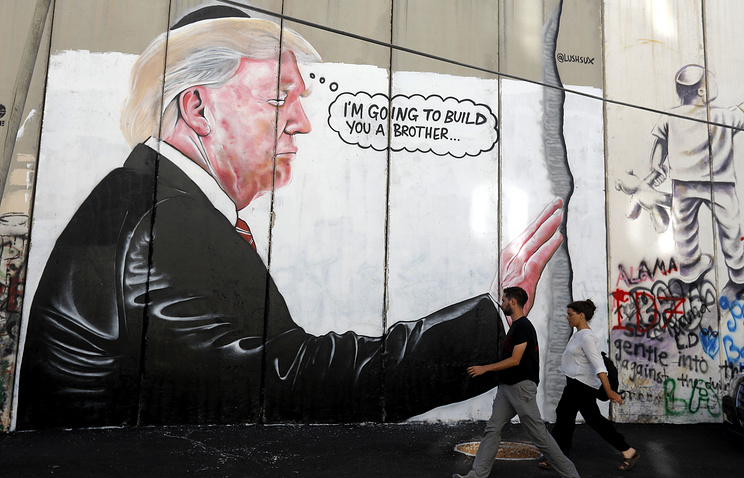 В Израиле на разделительном барьере появились гигантские граффити с Трампом