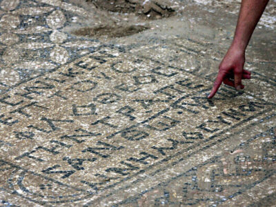 Одна из крупнейших мозаик, когда-либо обнаруженных в Израиле, была открыта во время раскопок в городе Лод. Но эта прекрасная мозаика конца пятого века теперь находилась в карьере, и поэтому ее было невозможно сохранить на месте находки. Она выставлена на обозрение в кампусе. Третья выставленная мозаика из церкви шестого века может похвастаться несколькими гексаграммами, комбинацией двух равносторонних треугольников. Мы называем этот дизайн магендовидом, и хотя мы думаем о нем как о еврейском символе, в древности он использовался как декоративный элемент в нескольких различных культурах.