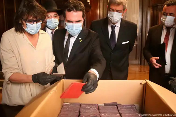 Верховный суд Аргентины сообщил о случайном обнаружении 83 коробок с нацистскими материалами, хранившимися в его подвале с 1941 года. Содержимое включает открытки, фотографии, пропагандистские материалы и тысячи тетрадей, принадлежащих нацистской партии. Коробки были отправлены германским посольством в Токио в июне 1941 года на японском пароходе «Нан-а-Мару». Аргентинские таможенные органы тогда изъяли пять коробок, обнаружив в них материалы, способствующие распространению идеологии Адольфа Гитлера в Аргентине во время Второй мировой войны. Материалы были конфискованы федеральным судьёй и переданы Верховному суду.