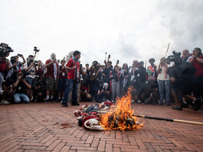 Трамп также раскритиковал антиизраильских и пропалестинских активистов, которые собрались в Вашингтоне 24 июля, чтобы выразить протест против обращения Нетаньяху к Конгрессу США, призвав к одному году тюремного заключения за осквернение национального флага. «Мы редко видели что-либо подобное. И я думаю, что вы должны получить один год тюремного заключения, если вы сделаете что-либо, чтобы осквернить американский флаг. Теперь люди скажут: «О, это неконституционно» — это глупые люди», — заявил Трамп.