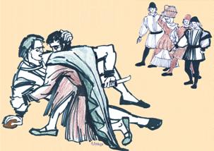 Наконец они встретили старого еврея, который возвращался из бейс а-мидраша. Этот человек сжалился над ними, рассказал им о том, что произошло с рабби Меиром, объяснил, почему евреи гетто так агрессивны по отношению к ним: каждый звук внушает им страх, что граф жестоко накажет их за то, что они приняли у себя государственного преступника.