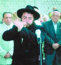 Стоя слушал зрительный зал, как главный раввин Екатеринбурга и Свердловской области Зелиг Ашкенази протрубил в шофар, знаменуя наступление нового 5763 года.