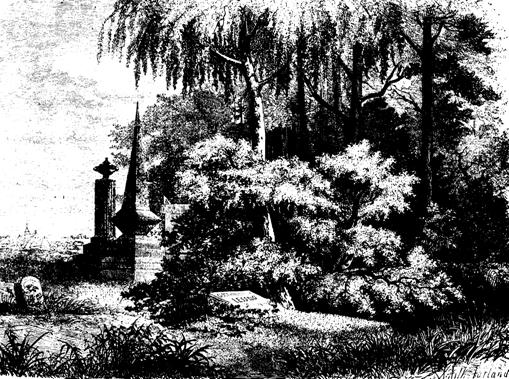 Могила Лессинга на кладбище Ст. Магни в Брауншвейге. Гравюра на дереве 1870 г.