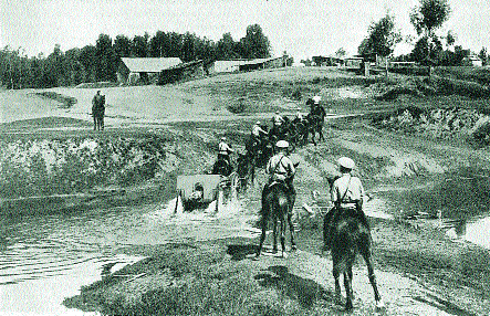 Русская артиллерия: переправа через реку.
