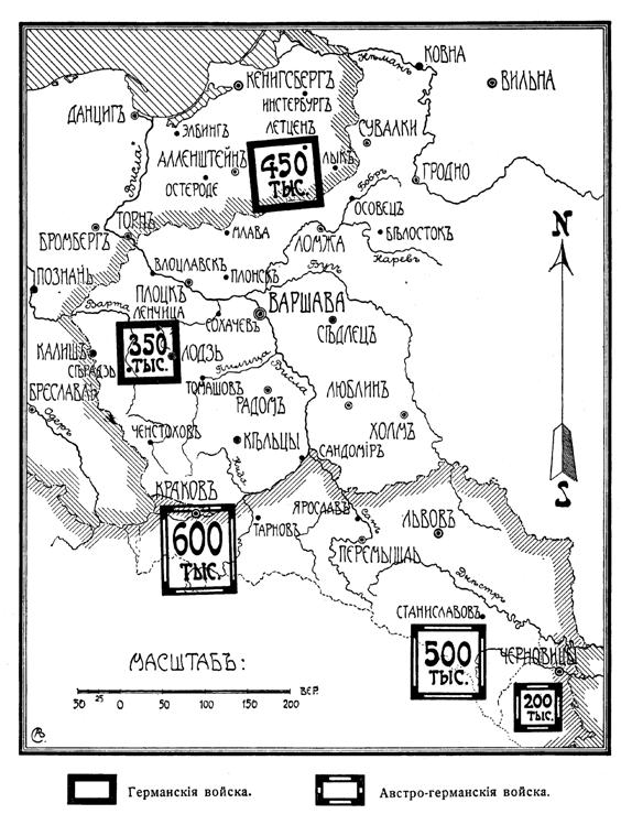 Схема примерного количества германских и австрийских войск на Российском фронте.
