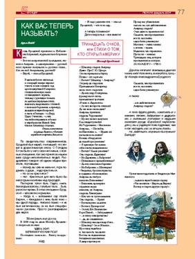 Здравствуйте! Пишет вам из Петрозаводска Виталик Земский. Мне 11 лет. Я учусь в 5 классе. С 5 лет я с бабушкой ходил в воскресную школу, которую в этом году закрыли. Мы изучали иврит, историю еврейского народа. В журнале «Лехаим» №2 прочитал я стихотворение «Кто открыл Америку» и решил написать, ответить на все вопросы.
