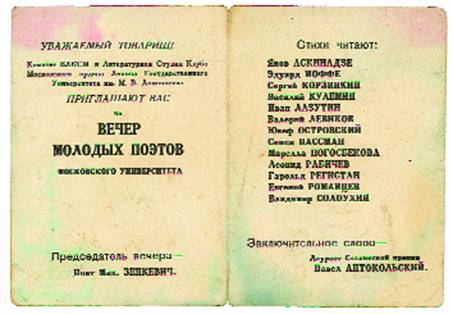 В 1939 году шестнадцатилетний Леня Рабичев собирался стать историком. Но в фойе юридического института случайно увидел красивую девушку и объявление о литературном кружке Осипа Максимовича Брика. Красивая девушка и кружок Брика. Случайность? Он поступил в юридический институт. Наука навсегда потеряла историка! А Леня Рабичев потерял лучшего друга Витю Рубина. Будущий медиевист Виталий Рубин, юноша серьезный, назвал поступок Лени легкомысленным, а стихи, которые тот писал, поверхностными.