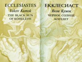 Перед нами два тома в твердых переплетах и суперобложках. Заглавия на русском и английском. «Екклезиаст». «Книга Иова». Обе изданы во второй половине 90-х в Москве. Тексты первоисточника на двух языках, комментарии Я. Кумока. Оформление и макет Л. Рабичева. «Сама идея издания принадлежит Якову, – рассказывает Леонид Николаевич. – Эрнст сделал рисунки специально для этих книг. Я долго читал Екклезиаста. И понял, что это поэма, что текст нужно печатать как стихи. Этого не делал никто до меня». Он достает и показывает брошюру без переплета, дизайн-макет новой книги из этой серии. В нее войдут основные пророки Танаха. Иллюстратор – Э. Неизвестный, комментатор – Я. Кумок.
