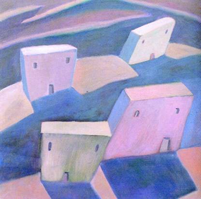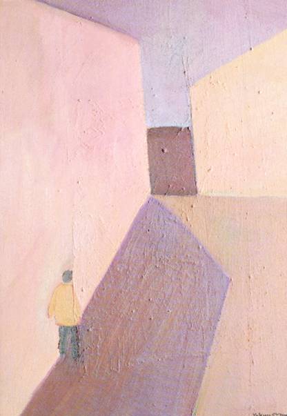 Давно подмечено, что и в жизни, и в искусстве чувство родства передается не по прямой: внуки оказываются ближе, чем родные дети. Елена Аксельрод вспоминала, что отец хотел видеть ее художницей, но она предпочла филологию и литературу. Отец смирился: в конце концов, и дядя, и мама – писатели. А вот внук, Михаил Яхилевич, стал художником – сначала театральным, а потом и станковым. Свой неповторимый стиль он нашел после репатриации. Цветовой и пространственный минимализм пустыни, стен, окон, балконов, неба, между которыми, как птенцы в ладони, зажаты условные фигурки людей, ставит человека лицом к лицу с бытием. Дома возникают из пустыни, как люди возникают из домов, вклиниваясь в небо.