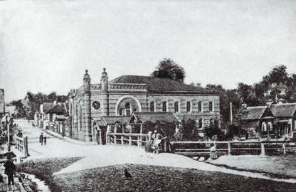 Большая каменная синагога, расположенная на углу бывшей Виленской ул. и набережной реки Дубровенка. Фото начала XX в.