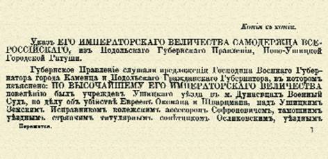 В 1838 году произошел случай, давший администрации возможность перейти от подозрения к формальному обвинению. В м. Дунаевцы (Ушицкого уезда Подольской губернии) из мести были убиты два «мосера», доносившие администрации на местных евреев по делам о рекрутской повинности. К суду были привлечены по обвинению в организации убийства 80 представителей еврейских общин Ушиц и окрестных местечек. Жившие в Бердичеве компаньоны убитых доносчиков показали полиции, что преступление совершено хасидами с одобрения ружинского цадика. Высшая киевская администрация, которая и раньше косо смотрела на «хасидского царя», поверила доносу. Так в 1838 году Исроэл Ружинский был арестован и отвезен в Киев. Никакие ходатайства богатых и влиятельных лиц, в том числе и бердичевского общественного деятеля Гальперина об освобождении цадика «на поруки» не привели к цели, и 22 месяца глава хасидов томился в тюрьмах Киева и Каменец-Подольска.