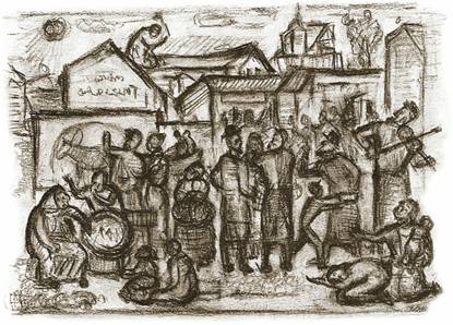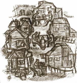 Меер Аксельрод. «Местечко». Иллюстрация к книге стихов И. Харика. 1926 год.