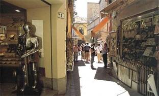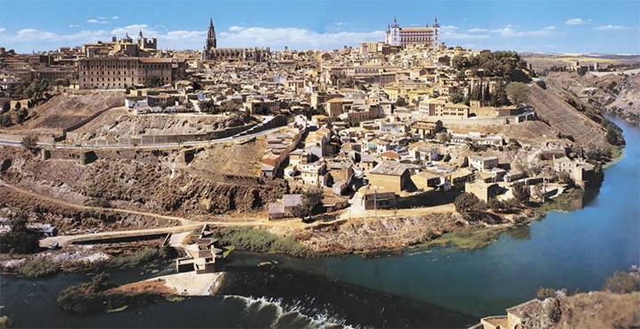 Старая испанская поговорка гласит, что когда Б-г создал солнце, Он поместил его над Толедо. Оказавшись здесь, вы не раз эти слова услышите. Но не раз им и поверите. Когда подъезжаешь к древней испанской столице, город открывается столь неожиданно, что его воспринимаешь как что-то нереальное. Через неширокую реку Тахо переброшены мосты с башнями, за крепостной стеной, на скалистом правом берегу, жмутся друг к другу невысокие здания восточного типа, а над ними врезается в небо готический шпиль Кафедрального собора и возвышается крепость Алькасар. Время здесь словно остановилось – город будто навсегда остался жить в XVI веке: те же узкие улочки, старинные здания, те же крепостные стены. Те же многочисленные мастерские и мастера, которые прямо при вас делают доспехи и арбалеты, изготовляют мечи, шпаги и кинжалы из знаменитой толедской стали. Идешь по узеньким улочкам города, и вдруг перед тобой возникает рыцарь в латах и с алебардой в руке, за ним другой, третий... Это торговцы сувенирами выставляют у дверей магазинчиков манекены.