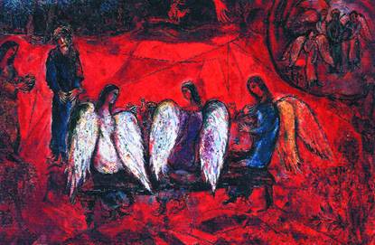 Рассказывается в Торе, что Авраам, принимая пришедших к нему ангелов за обыкновенных путников, постарался принять их как можно лучше и угостить самым вкусным: «И взял масла, и молока, и теленка, которого приготовил, и поставил пред ними» (Брейшис, 18:8). Раши особо отмечает, что «хлеба он не принес». Почему? Потому что Авраам «исполнил всю Тору раньше, чем она была дарована» (Кидушин, 4:14) и в его доме тщательно соблюдали законы ритуальной чистоты, не делая исключений даже для гостей-язычников. С появлением ангелов Сара омолодилась и к ней вернулась способность рожать; выразилось это в том, что внезапно, как раз в тот момент, когда она замешивала тесто для хлеба, у нее начались месячные. В результате тесто оказалось ритуально оскверненным и, согласно правилам дома Авраама, непригодным для угощения путников.